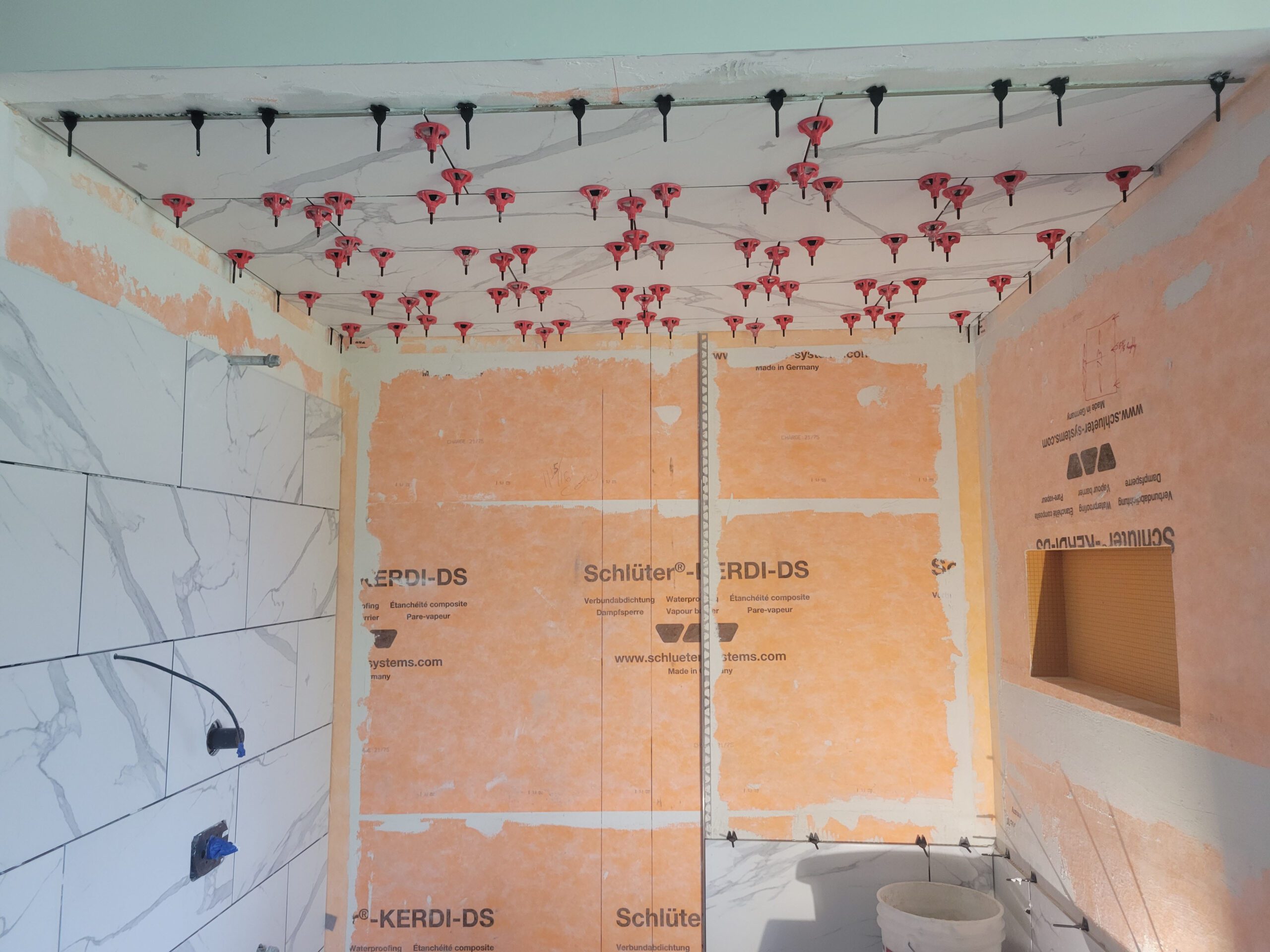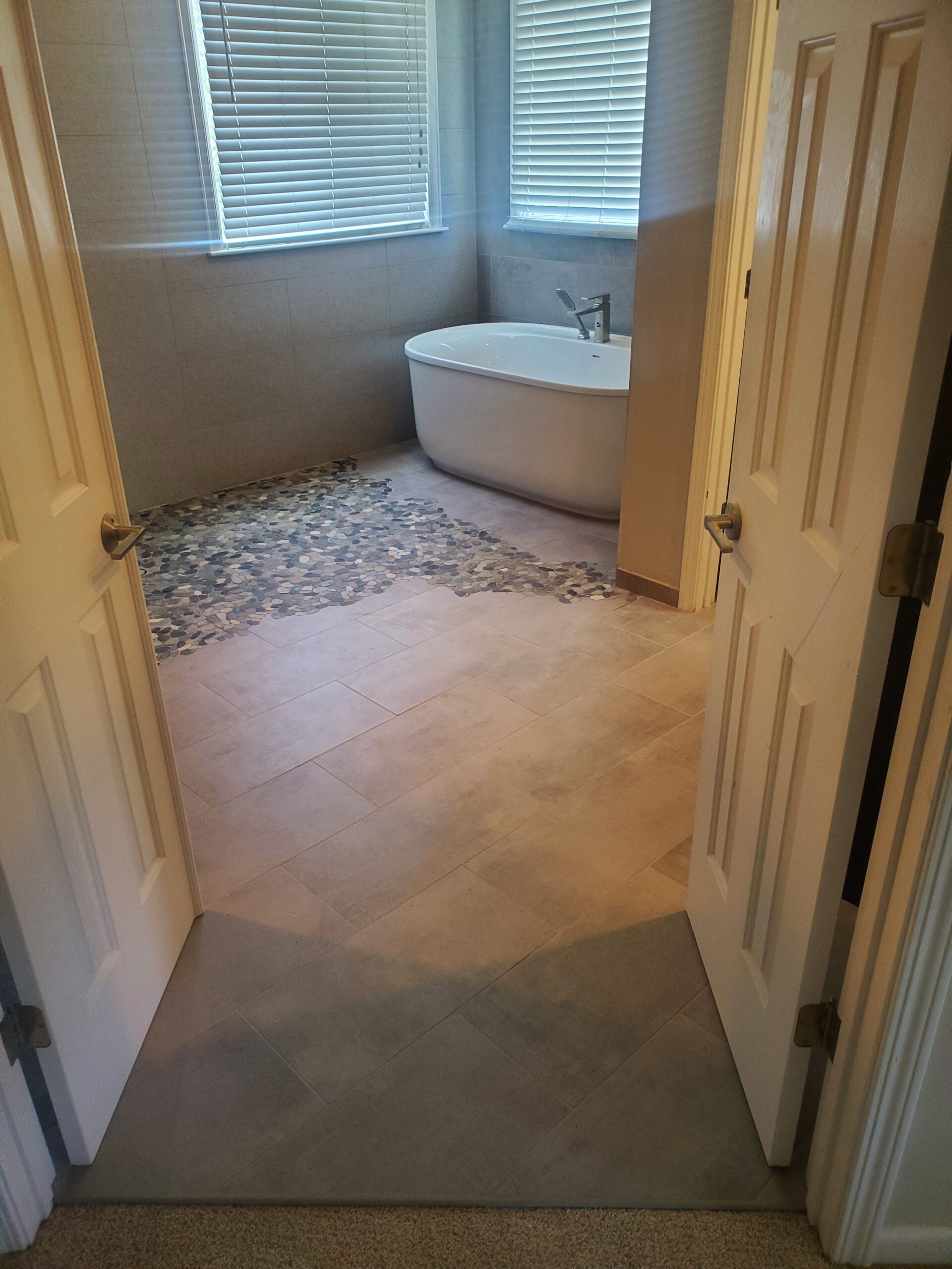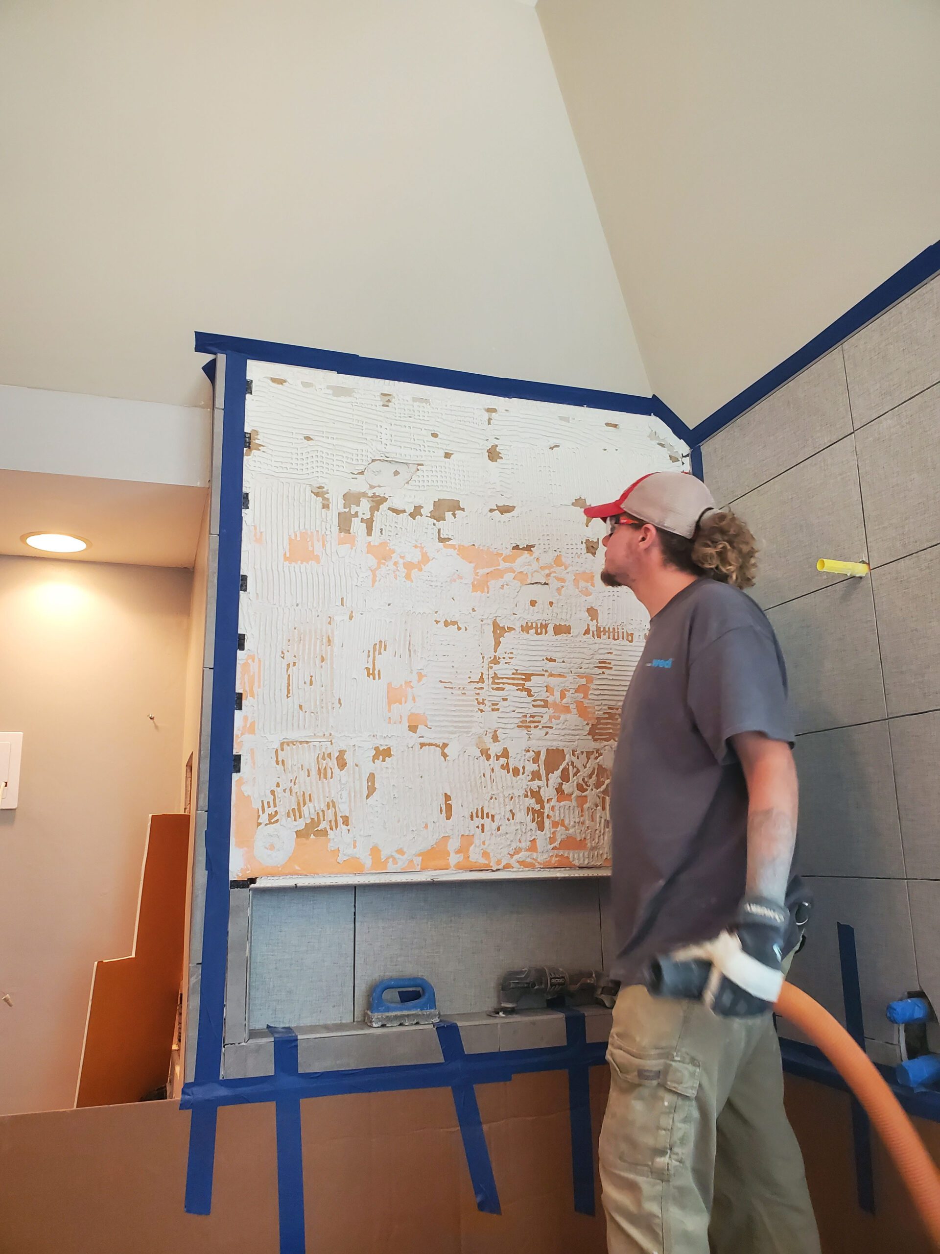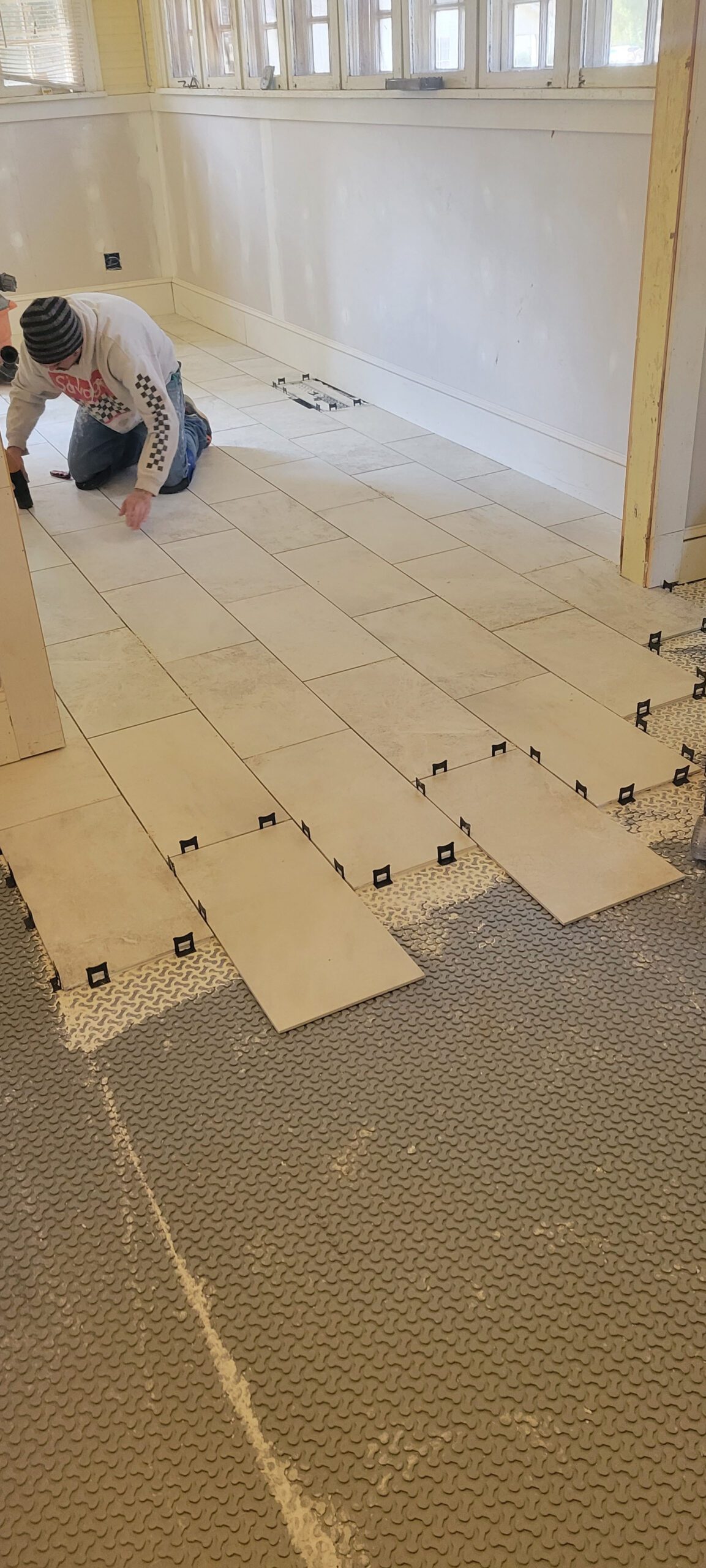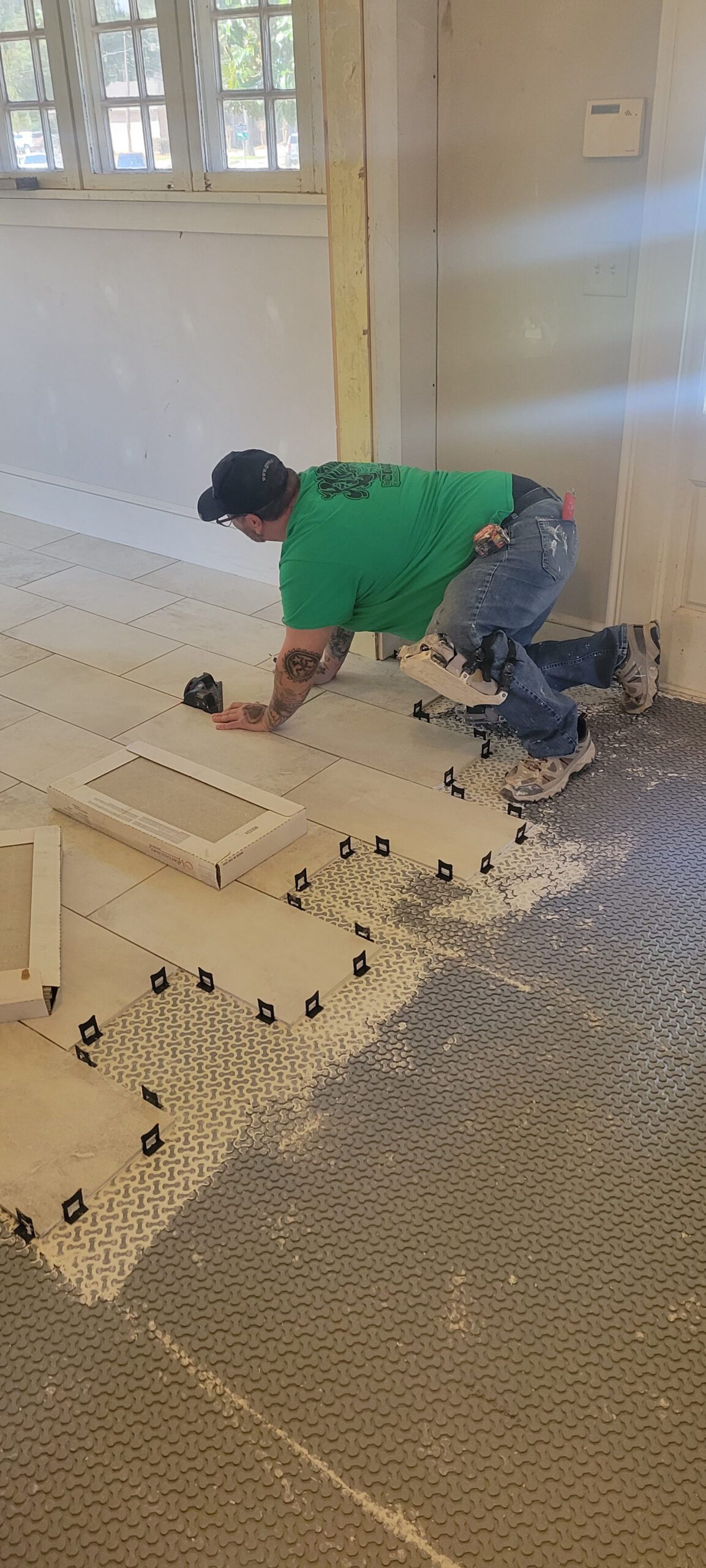 Logo with the text "Floor 2 Ceiling Tile & Stone" in blue and red.